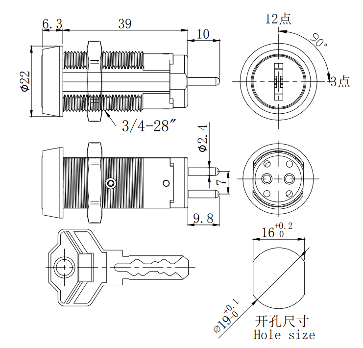 1.Key turn to 90dx,can pull out on 12 O’clock.