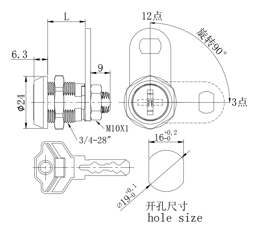 1.Key turn to 90dx or 180dx,pull out on 12 Oclock.